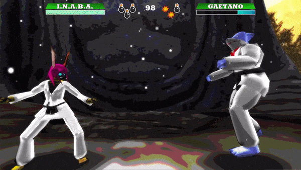 The game currently features 4 characters plus a rather broken boss character and has only local versus, a quick tutorial and training mode.